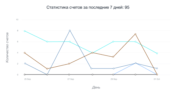 - Бұл бөлімде графикалық көріністе сіздің серіктестік тобыңызда әр түрлі уақыт периодына ашылған есептер санын көре аласыз.