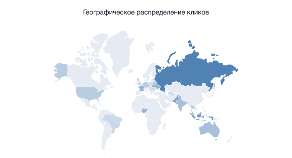 - Кликтердің географиялық таратылуының статистикасы барлық серіктестік әрекет уақытында ең көп өтуді жасаған елдерді көрсетеді.