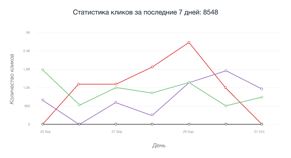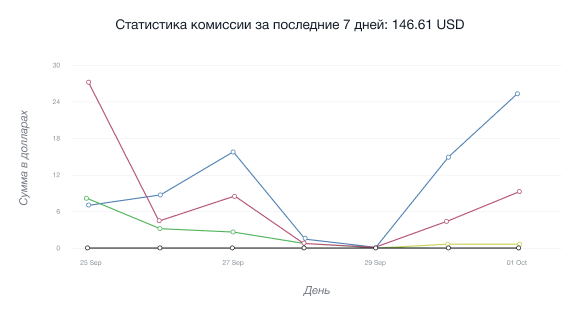 - Графика сіздің серіктестік сілтемеңізге және серіктестік меткаларға барлық рефералдардың жалпы өтудер санын көрсетеді таңдалған уақыт периодына.