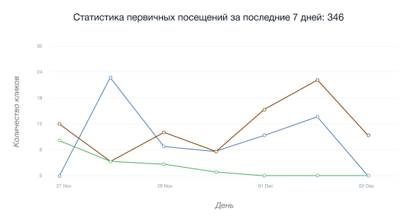 - Бұл графика алғаш рет серіктестік сілтемеге немесе меткага өткен келушілер санын көрсетеді.