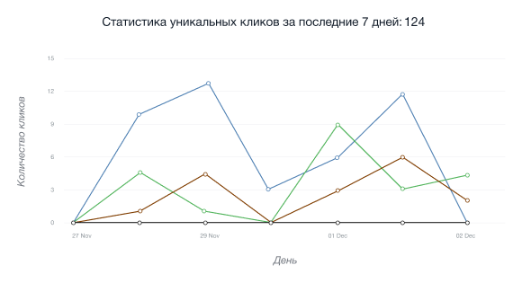 - Бірегей кликтердің графикасы соңғы 24 сағат ішінде анық IP мекенжайдан алғаш рет өткен келушілер санын көрсетеді.